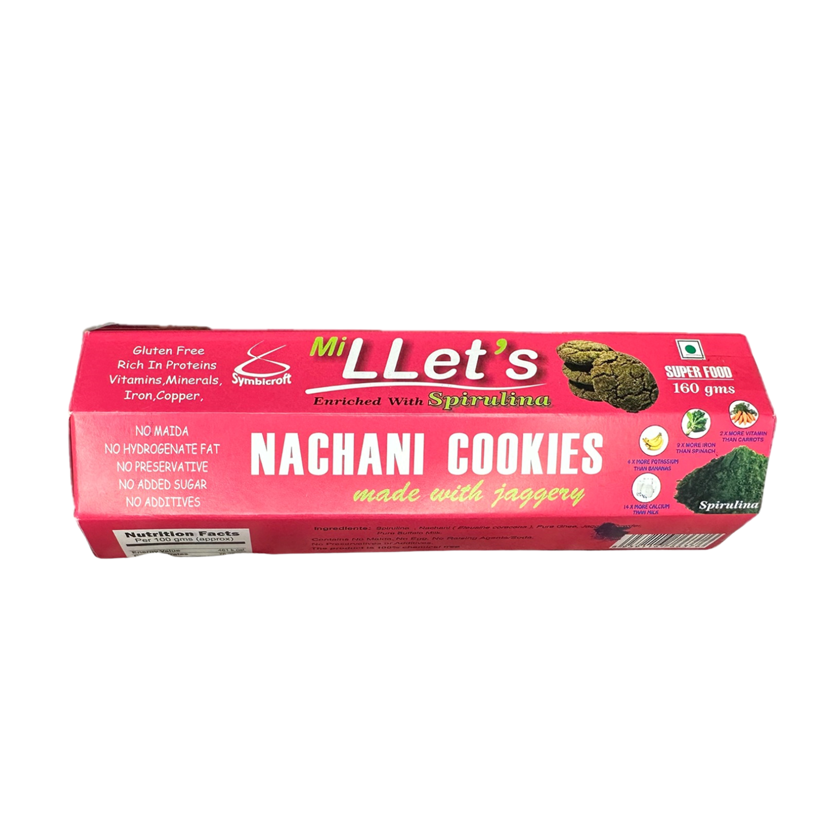 Organic, Gluten-Free & Jaggery-Based We use clean, natural ingredients — no refined sugar, no gluten, just real nutrition powered by Spirulina and jaggery.